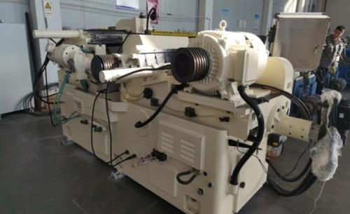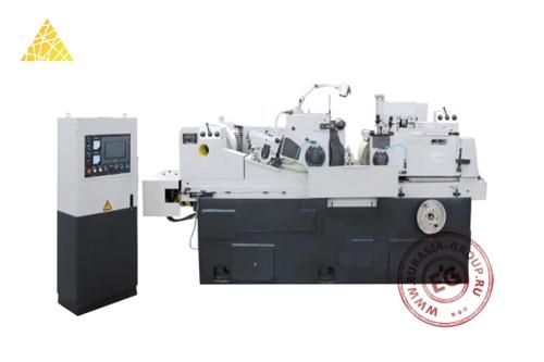Конструкция станка включает массивную литую станину, на которой располагается шлифовальная бабка с широкими шлифовальным (600 мм) и направляющим (350 мм) кругами, диаметр у обоих - 600 мм. Также имеется рама с двухопорными направляющими колесами, которая поддерживает длинные заготовки. Механизм подачи использует японский серводвигатель и французский редуктор Dynabox. Минимальная величина подачи составляет 0,001 мм. Станок выполняет врезное и сквозное шлифование. Машина управляется современной электронной системой ПЛК Mitsubishi , которая контролирует величину подачи колесной пары, скорость и время шлифования.