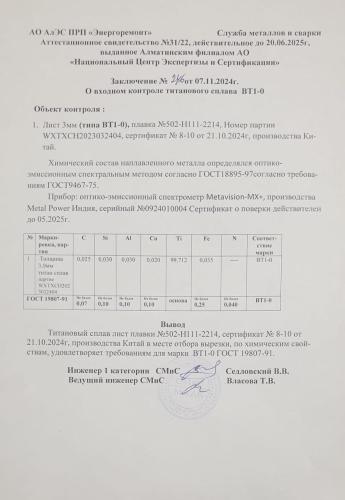 - Обработка и сварка: Листы ВТ1-0 обладают высокой пластичностью, что облегчает механическую обработку, штамповку, лазерную и гидроабразивную резку, а также сварку.